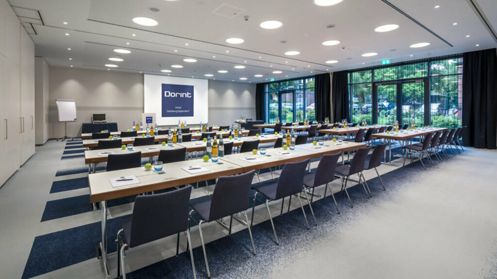 Geben Sie Ihrem Unternehmen viel Platz: In unseren sechs großzügigen, lichtdurchfluteten Tagungsräumen genießen Sie 3,70 m hohe Decken und eine Gesamtgrundfläche von mehr als 400 m². Modernste technische Ausstattung ist für uns ebenso selbstverständlich wie unser individuelles kulinarisches Know-how und weitere exzellente Serviceleistungen. Nutzen Sie die hervorragenden Bedingungen, die wir Ihnen bieten, um Zusammenkünfte auf höchstem Niveau auszurichten – für Forschungsseminare, Feierlichkeiten und große Konferenzen gleichermaßen. Was das Dorint Hotel Hamburg-Eppendorf jedoch so einzigartig macht, ist seine Lage: Direkt neben dem Universitätsklinikum Eppendorf und nur drei Kilometer von der Hamburg Messe entfernt, zentrumsnah und doch mitten im Grünen.